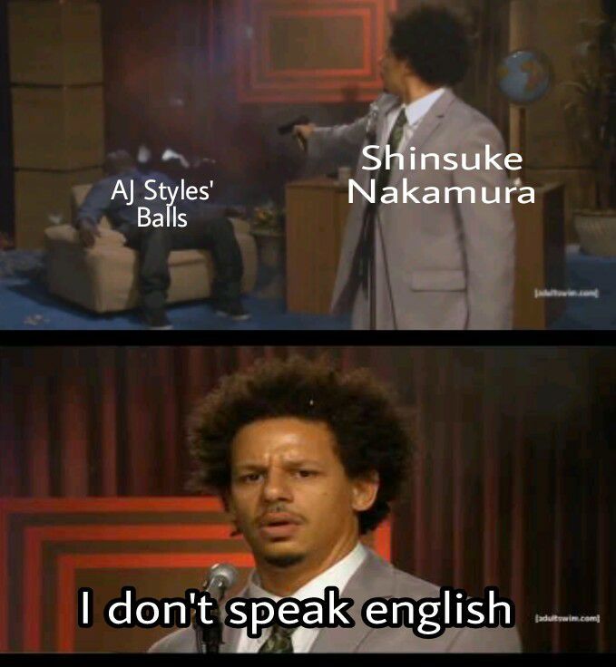 I want an Ironman match between AJ and Shinsuke but instead of how many pinfalls they can get it’s nutshots.