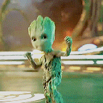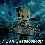He says, “Welcome to the frickin’ Guardians of the Galaxy!” Only he didn’t use “frickin’”.