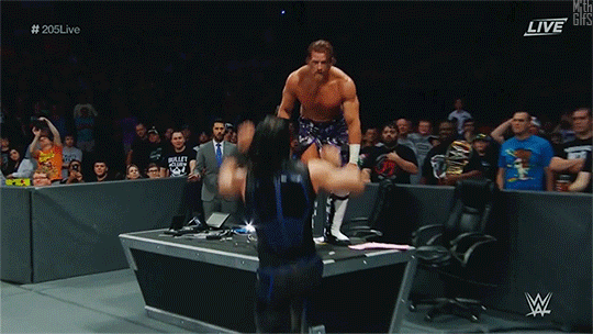 “HOLY HELL!” –Tom Phillips, making the call as Mustafa Ali does a Spanish Fly off the announce table to Buddy Murphy.